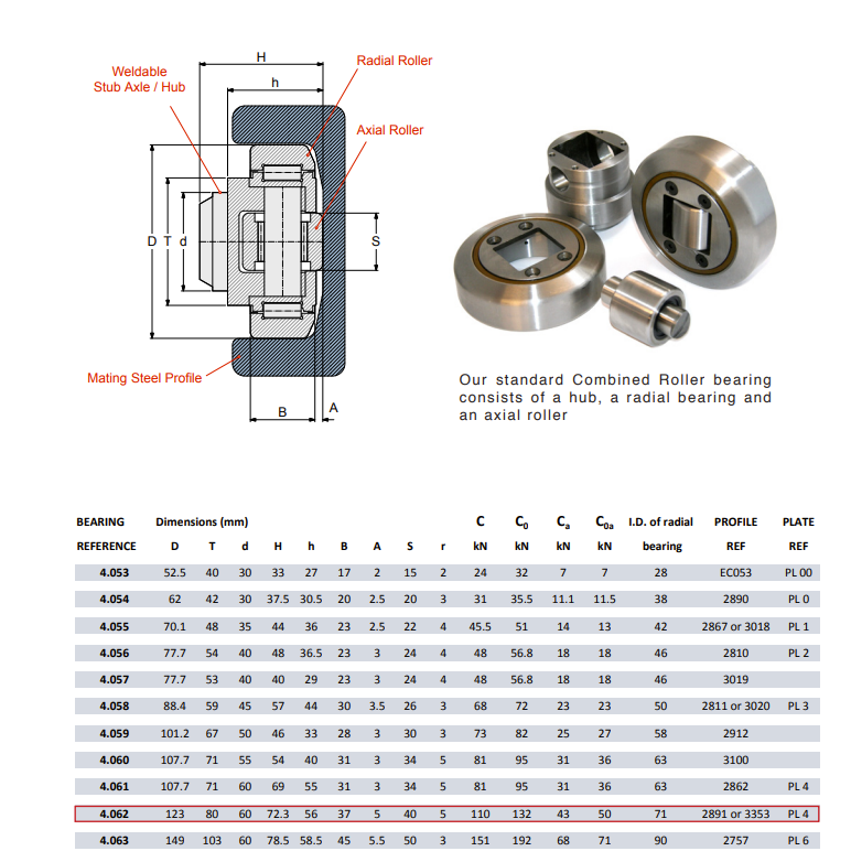 4.062 Winkel Combined Bearing MR0029, 400-0062 Axial Bearing
